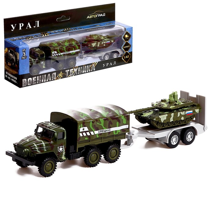 УЦЕНКА Грузовик металлический Автоград «УРАЛ «Армия с прицепом», масштаб 1:43, МИКС