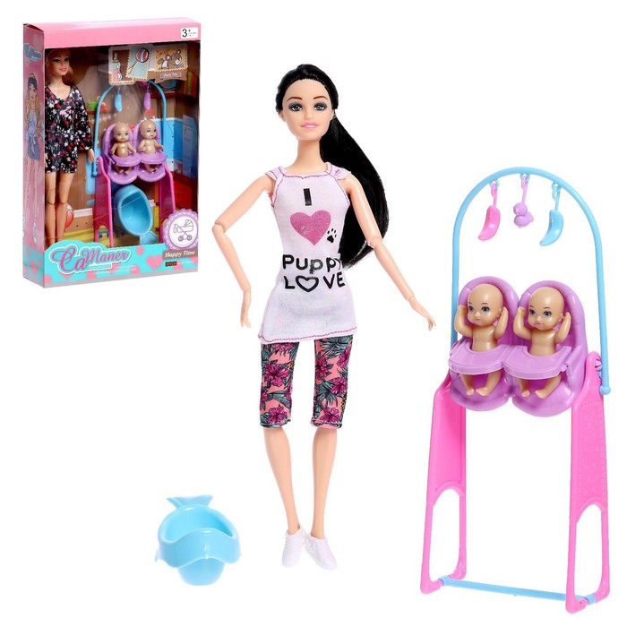 УЦЕНКА Кукла-модель шарнирная «Молодая мама» с малышами и аксессуарами, в лосинах