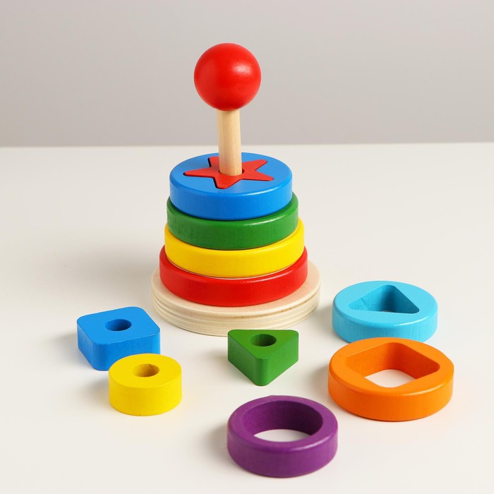 Собирая пирамидку, ребёнок учится различать цвета и формы, развивает логическое мышление и координацию движений. Игрушка стимулирует воображение и помогает освоить базовые навыки сортировки. Это отличный способ провести время с пользой и подготовиться к школе.
