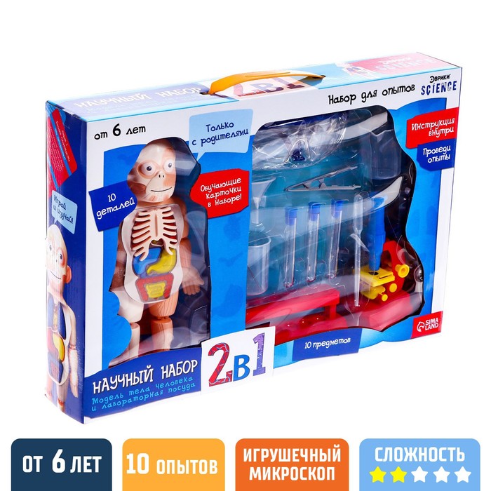 УЦЕНКА Набор для опытов «Научный набор 2В1», модель тела человека и лабораторная посуда
