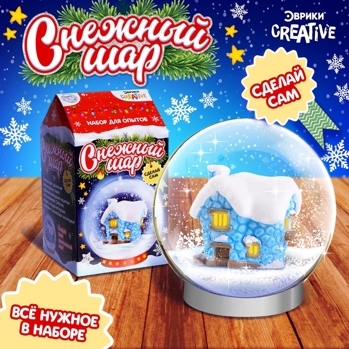 Набор для опытов «Снежный шар» — то, что нужно для полезного и интересного досуга! Такой подарок поможет ребёнку скрасить ожидание Нового года, а также позволит самостоятельно создать новогоднюю игрушку.