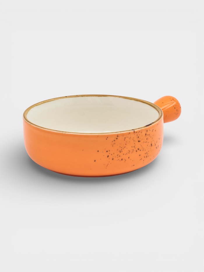 Пара оранжевых кокотниц в крапинку — для тех, кто не боится добавить характер в сервировку, не нарушая вкуса. Каждая рассчитана на 500 мл: хватит на порцию жульена, овощной запеканки, сырного суфле или десерта — для одного или вдвоём. Фарфор без покрытия не вступает в реакцию с продуктами, не впитывает запахи и не теряет внешний вид даже после частого использования.