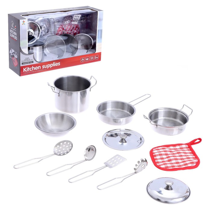 УЦЕНКА Набор металлической посуды «Готовим ужин», 11 предметов (помята упаковка)