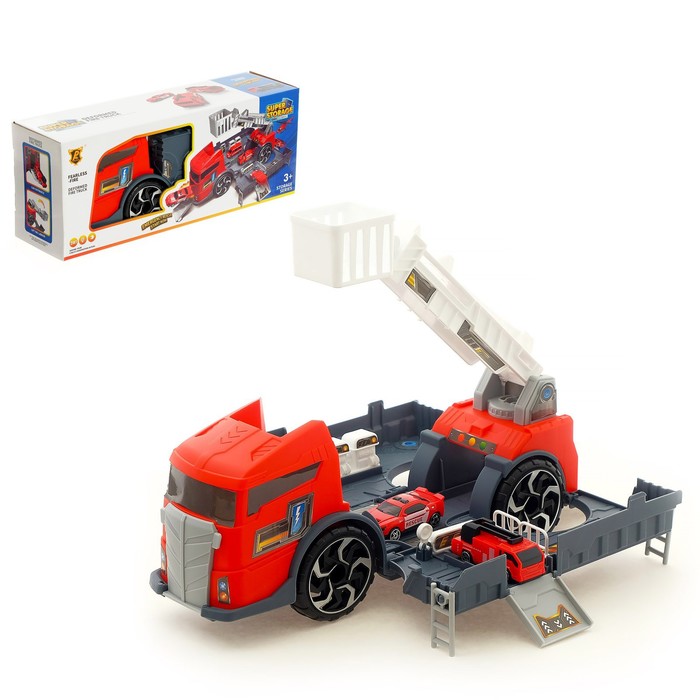 - Парковка-трансформер: эта парковка умеет удивлять! Она собирается в огромный грузовик, который легко перевозит всю пожарную технику. Открывай окошки, устраивай смотровую площадку или катай машинки по горке – здесь есть место для самых смелых идей.